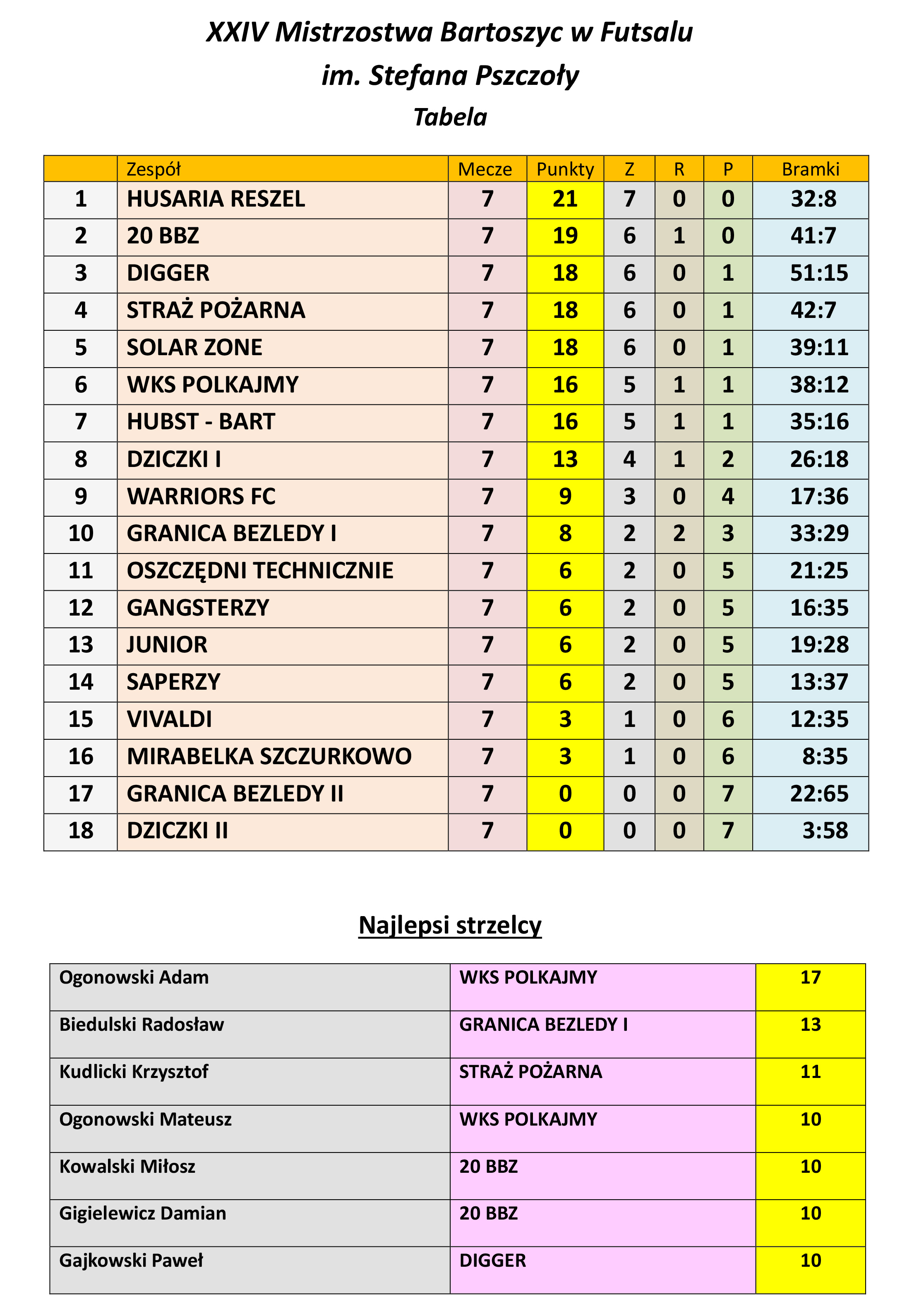 Miniony weekend przyniósł sporo futsalowych emocji podczas XXV Mistrzostw Bartoszyc w Futsalu im. Stefana Pszczoły. Rozegrano jedynie spotkania VII kolejki, ale nie zabrakło w nich walki.