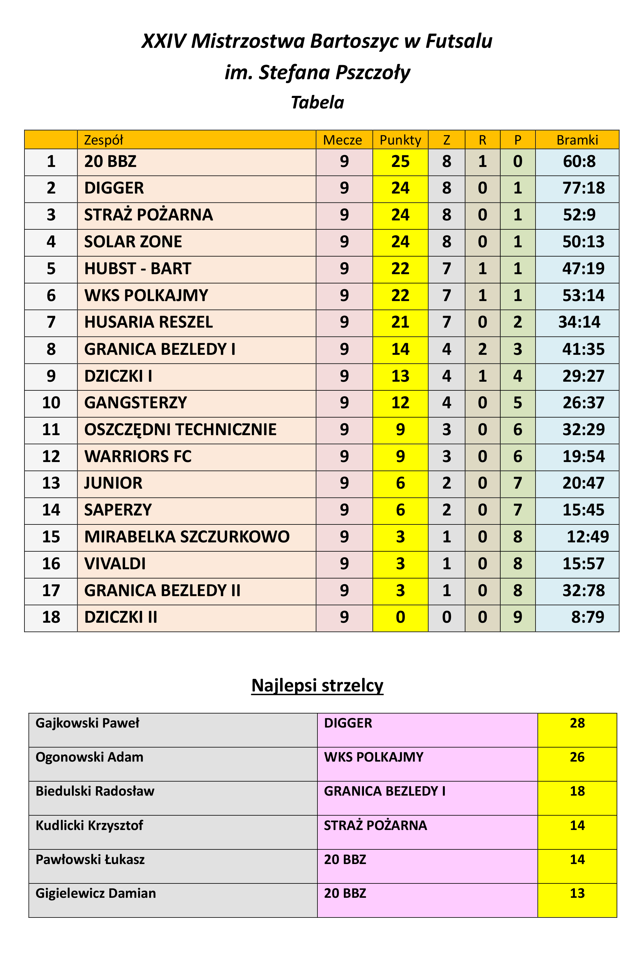 Na czele 20 BBZ. Digger Straż Pożarna oraz Solar Zone depczą czołówce po piętach, mając na koncie po 24 punkty.